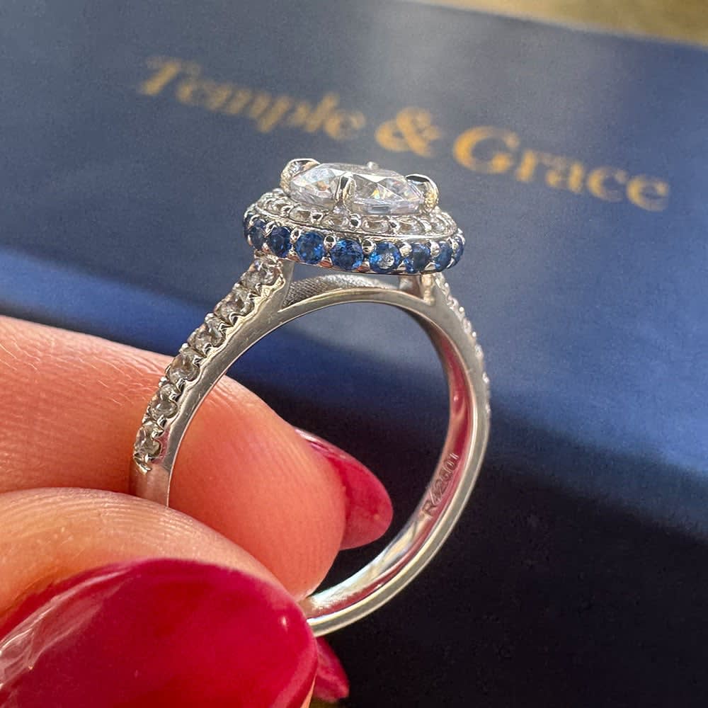 An absolute stunner, this stunning hidden sapphire diamond engagement ring fully embraces the trend. The elegant diamond-paved shank is embellished with a certified claw set 0.90 carat diamond surrounded by a row of diamonds and blue sapphires on the sides creating a halo effect. This timeless jewel effortlessly captures attention with its rich design. This band is available in 18K white, yellow, rose gold, and platinum 950. The jewellery is beautifully handmade to the highest standards. Shop directly from us and save over 40% when compared to high-street retail prices. We also offer unmatched 100 day returns. Buy online or book an appointment to visit our jewellery boutiques in Sydney and Melbourne.
