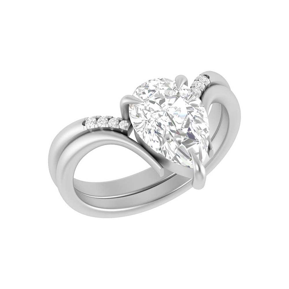 A beautiful and stunning design. Set with a lab pear cut diamond which elevates the design more. An elegant ring for an elegant lady to wear. The ring is made from solid gold and has the a design of double band together. With diamonds set on the one band this emphasises the ring a touch more. A beautiful gift ideas to the lady of your life. She would admire this ring as also her friends. Magnificently made by professional jewellers and their skilful craftsmanship. Available in rose, white and yellow gold. Temple and Grace offer lifetime warranty and complimentary resizing and rhodium plating. Ask our professional sales advisors for any assistance.
