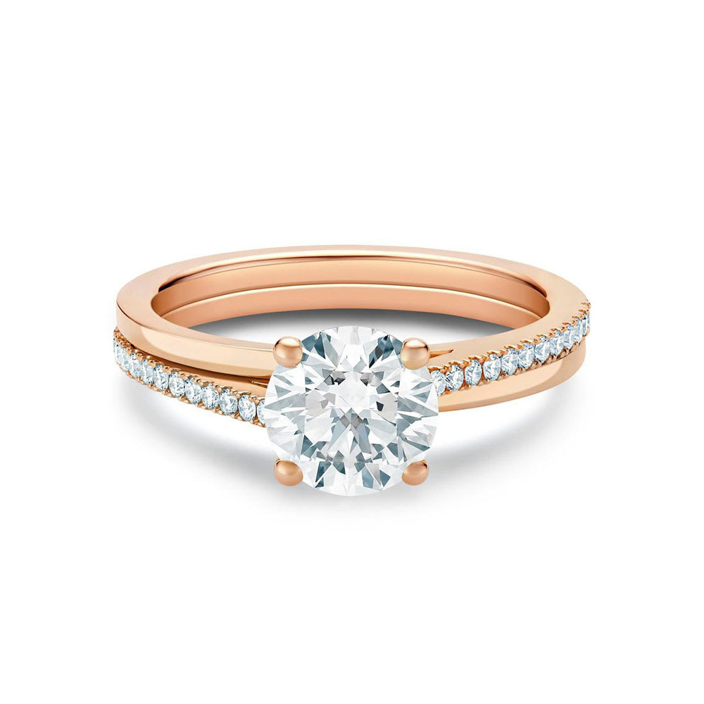 Round Brilliant Diamond Engagement Rose Gold Pave Band