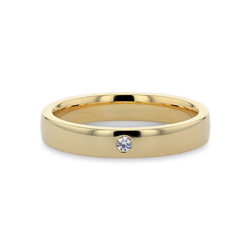 This ring carries an elegant simplicity that highlights timeless charm. Its smooth polished surface flows gracefully around the band, offering a refined and understated appeal. At the centre rests a single sparkling diamond, carefully set to draw the eye with its radiant brilliance. The design is minimal yet sophisticated, making it versatile for both daily wear and special occasions. Its beauty lies in the balance of subtle grace and the luminous sparkle, giving it a modern yet classic allure. All Temple and Grace jewellery is beautifully crafted to the highest standards and is made at our jewellery workshop directly by us (skilled jewellery craftsmen). This is why you can save over 40% when compared to high-street retail prices. We also offer a lifetime warranty and unmatched 100 day returns. You can shop online or book an appointment to visit our jewellery boutiques in Sydney, Melbourne, Brisbane, Perth and Adelaide.