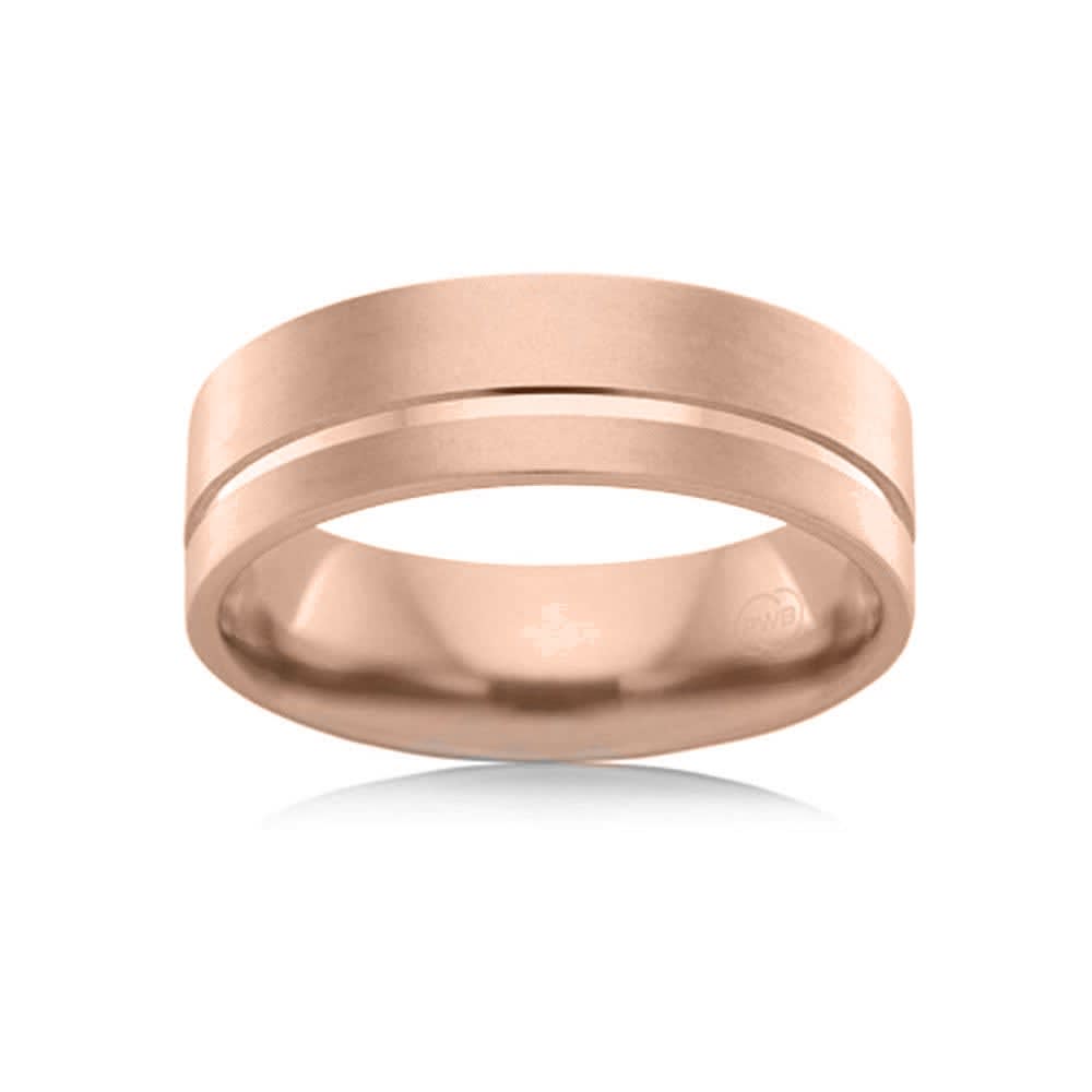 This men's wedding ring boasts a matte finished surface, which gives it a refined and contemporary look. The centrepiece of it is a polished groove line that meanders across the band. This grooved line is skillfully polished to a high shine, creating a striking contrast against the matte background. The edges are gently rounded, providing a smooth and comfortable feel on the finger. All Temple and Grace jewellery is beautifully crafted to the highest standards and is made at our jewellery workshop directly by us (skilled jewellery craftsmen). This is why you can save over 40% when compared to high-street retail prices. We also offer a lifetime warranty and unmatched 100 day returns. You can shop online or book an appointment to visit our jewellery boutiques in Sydney, Melbourne, Brisbane, Perth and Adelaide.