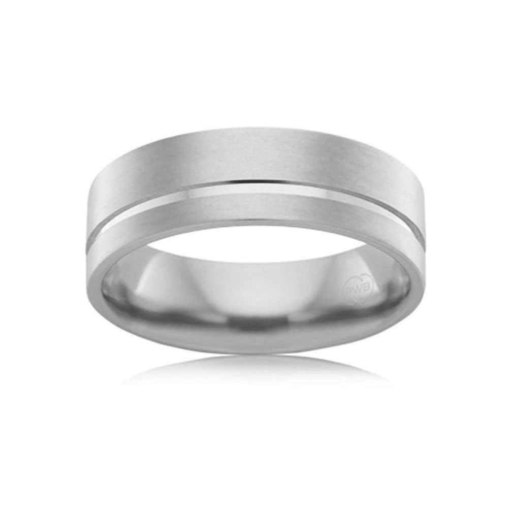 This men's wedding ring boasts a matte finished surface, which gives it a refined and contemporary look. The centrepiece of it is a polished groove line that meanders across the band. This grooved line is skillfully polished to a high shine, creating a striking contrast against the matte background. The edges are gently rounded, providing a smooth and comfortable feel on the finger. All Temple and Grace jewellery is beautifully crafted to the highest standards and is made at our jewellery workshop directly by us (skilled jewellery craftsmen). This is why you can save over 40% when compared to high-street retail prices. We also offer a lifetime warranty and unmatched 100 day returns. You can shop online or book an appointment to visit our jewellery boutiques in Sydney, Melbourne, Brisbane, Perth and Adelaide.