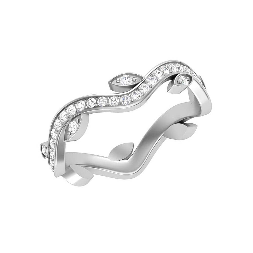 Art deco look in a wave design wedding band. It is set with diamonds as if floating in the ring. A romantic band to have for your forever ring. available in rose, white and yellow gold. Ask our professional sales advisors for any assistance.